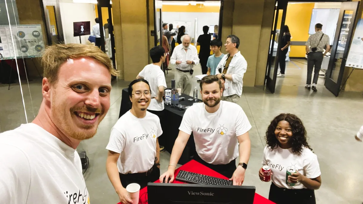 LiU-studenterna vid presentationen av projektet på Stanford.