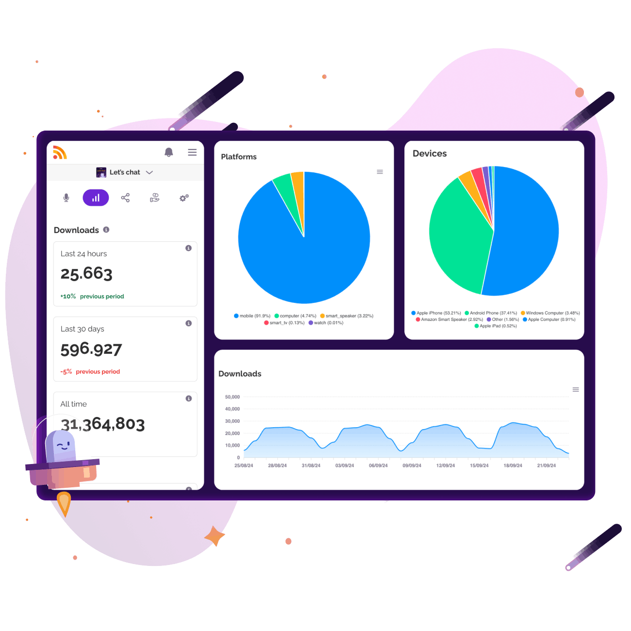 Illustration promoting RSS.com podcast migration offer with 6 months free. Feat… div.homepage > div.move-your-podcast__container > div.move-your-podcast__content > img.move-your-podcast__content-image | rss.com/images/features/common/move_your_podcast@2x.png |
