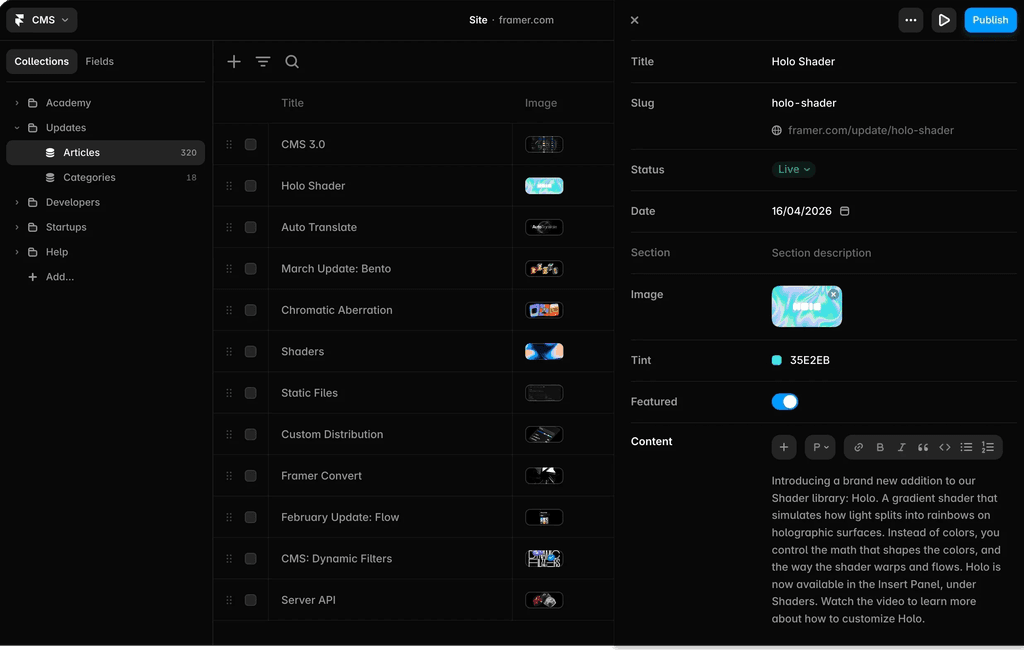 | www.framer.com/cms/ | Learn more |