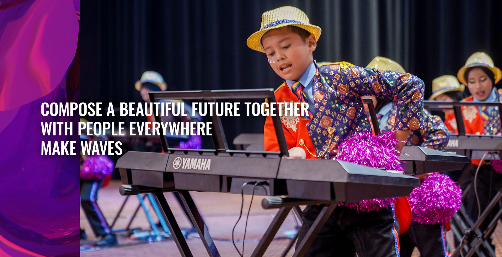 [Main visual] COMPOSE A BEAUTIFUL FUTURE TOGETHER WITH PEOPLE EVERYWHERE MAKE W… div#swiper-wrapper-57b7690a288e66c5 > div.swiper-slide > picture.bg-image > img | www.yamaha.com/en/images/main_image_wave03.jpg |