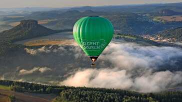 Ein grüner Heißluftballon fährt vor der Kulisse der Sächsischen Schweiz. article#highlight-slide-6341 > div.rsSlideContent > div.rsImage > img.media-object | www.sachsen.de/img/SGS_Teaser_rdax_365x205_87s.jpg |